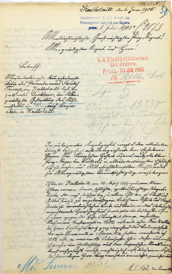 En medio de las polémicas deportaciones de la nueva administración Trump, que separa familias obligando a padres y madres a exiliarse, resurge con ironía esta histórica carta de su abuelo mostrando un dolor similar. La carta es un ruego al príncipe Luitpold de Bavaria, quien por aquel entonces gobernaba Kallstadt, para no ser deportado de nuevo a los Estados Unidos.