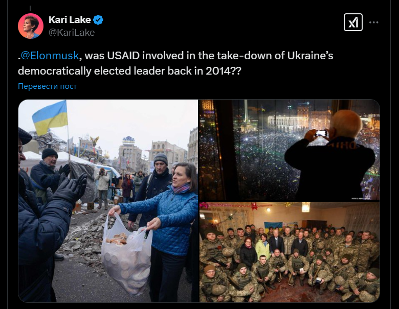 (2/8) "Was USAID involved in the takedown of Ukraine’s elected government in 2014?" asks Kari Lake, sharing a photo of Nuland at the Euromaidan riots. Others accuse her of using US tax dollars to back the coup