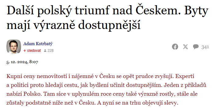 Poláci mají daleko rozvinutější kapitálový trh... a ceny nemovitostí jsou tam citelně nižší. Byt v novostavbě ve Varšavě stojí po přepočtu do korun tolik, co starý panelákový byt na kraji Prahy...