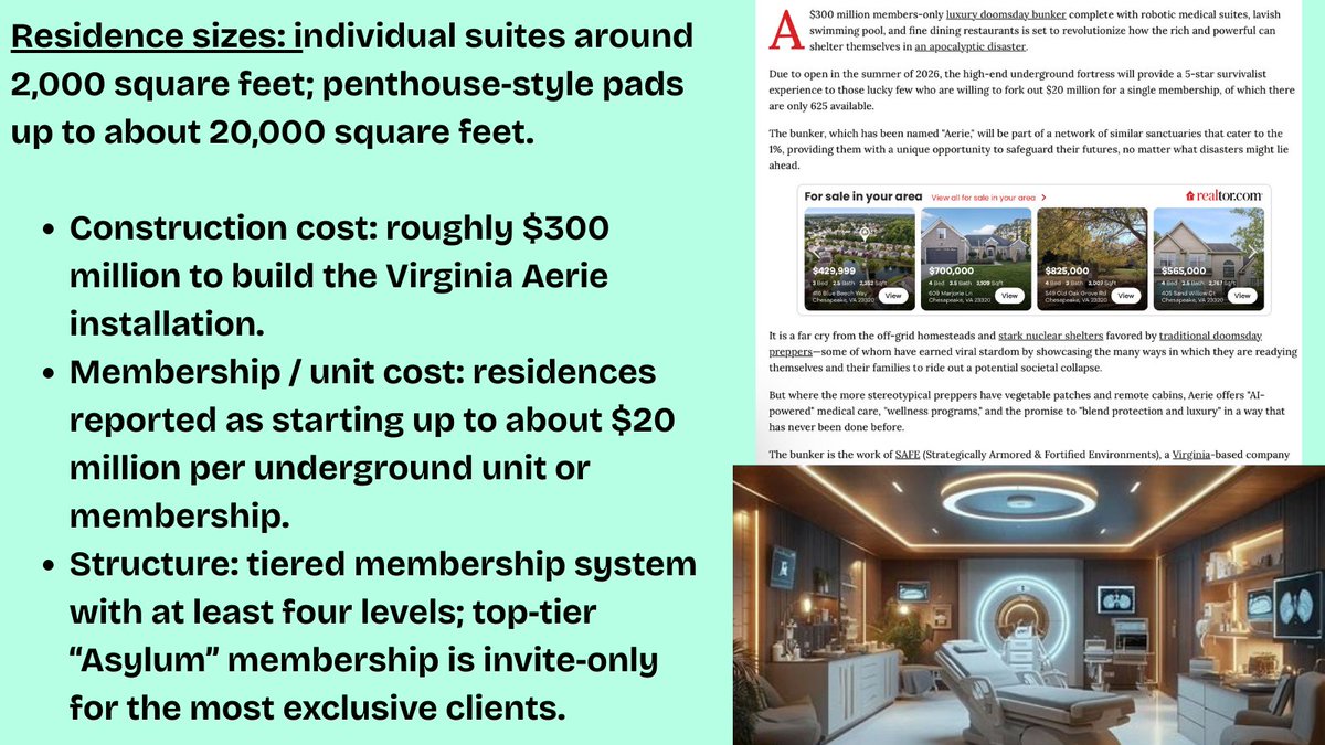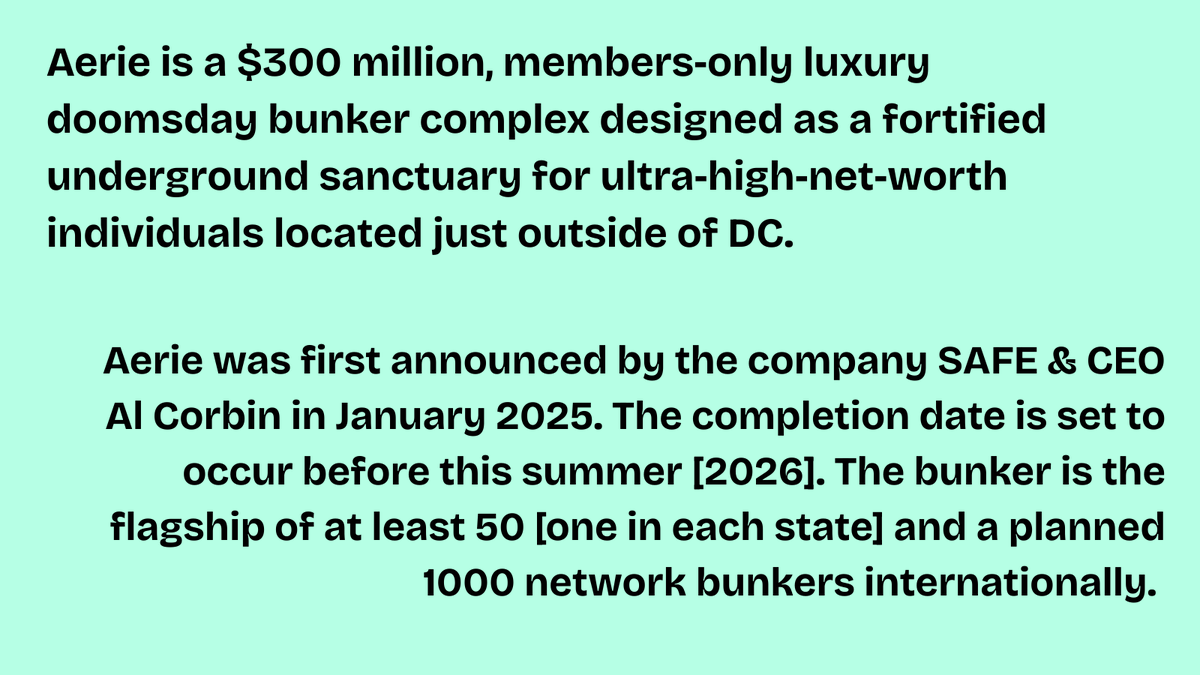 2🧵Aerie is the first in a bunker network being built by the U.S. security firm SAFE (Strategically Armored & Fortified Environments).
