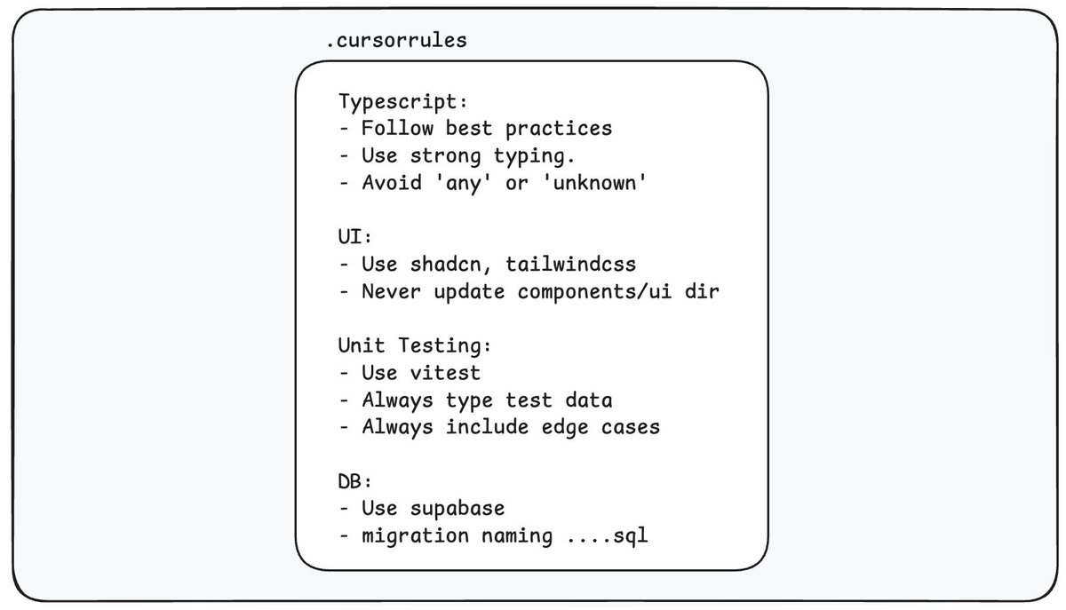 4/ Before, we had to put all rules in a single .cursorrules file. Typescript, Database rules, UI everything in one place. But that wasn’t ideal. Sometimes, the Agent didn’t know which rules to apply, and you couldn’t be specific. Technically, it just filled up your context window with unnecessary information.