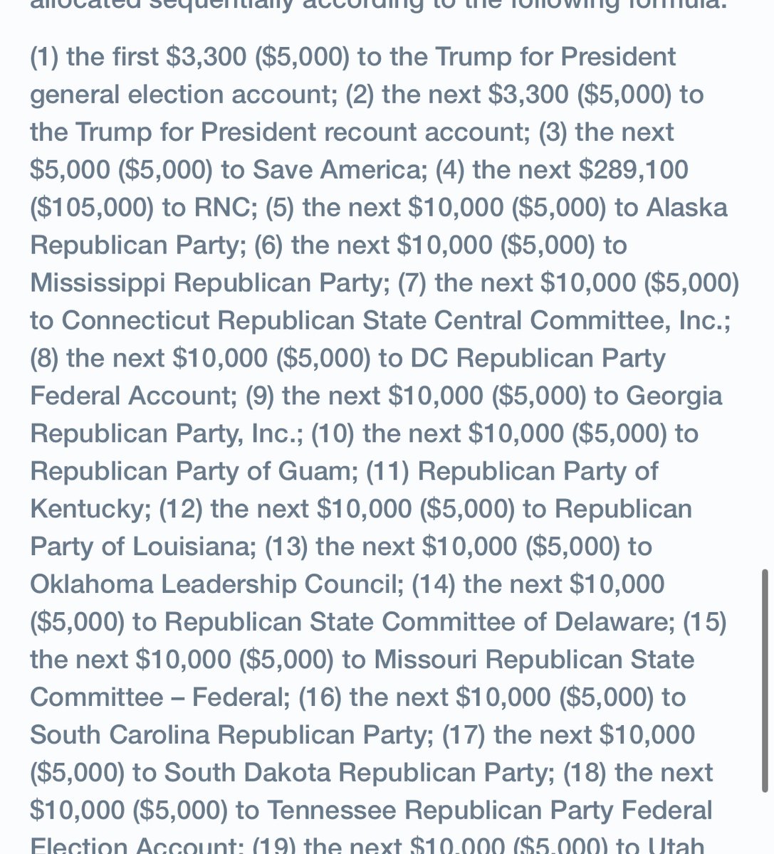 Save America is part of the Trump 47 joint fundraising committee that includes the campaign, the RNC, and dozens GOP state parties. That committee has raised more than $140M, and Save America is high in the fundraising waterfall—third priority, ahead of the RNC