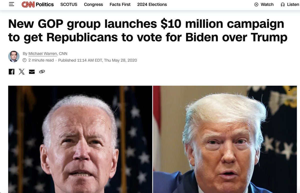 In May 2020, DDT launched Republican Voters Against Trump, spending $10 million on a campaign to convince GOP voters to choose Biden over Trump. They especially targeted swing states like Michigan, Pennsylvania, Florida, Wisconsin, North Carolina, and Arizona.