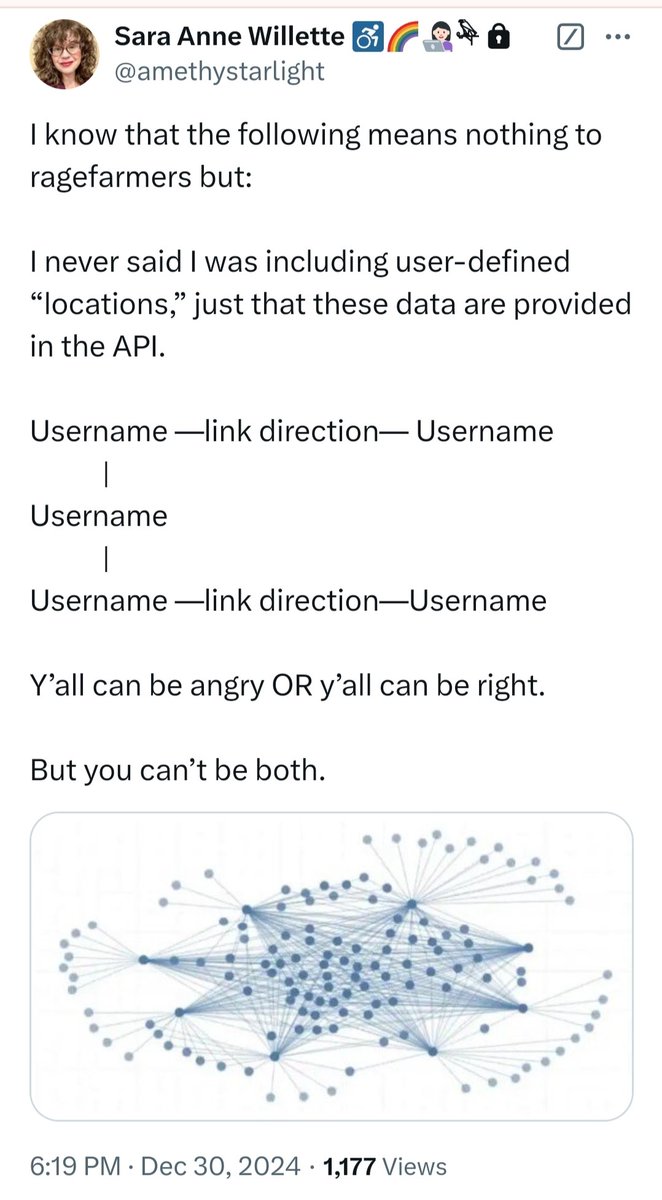 Sara Anne Willette's visualization tool - is not a list. It is a visual representation of a group of accounts, so that she can remove herself from them.