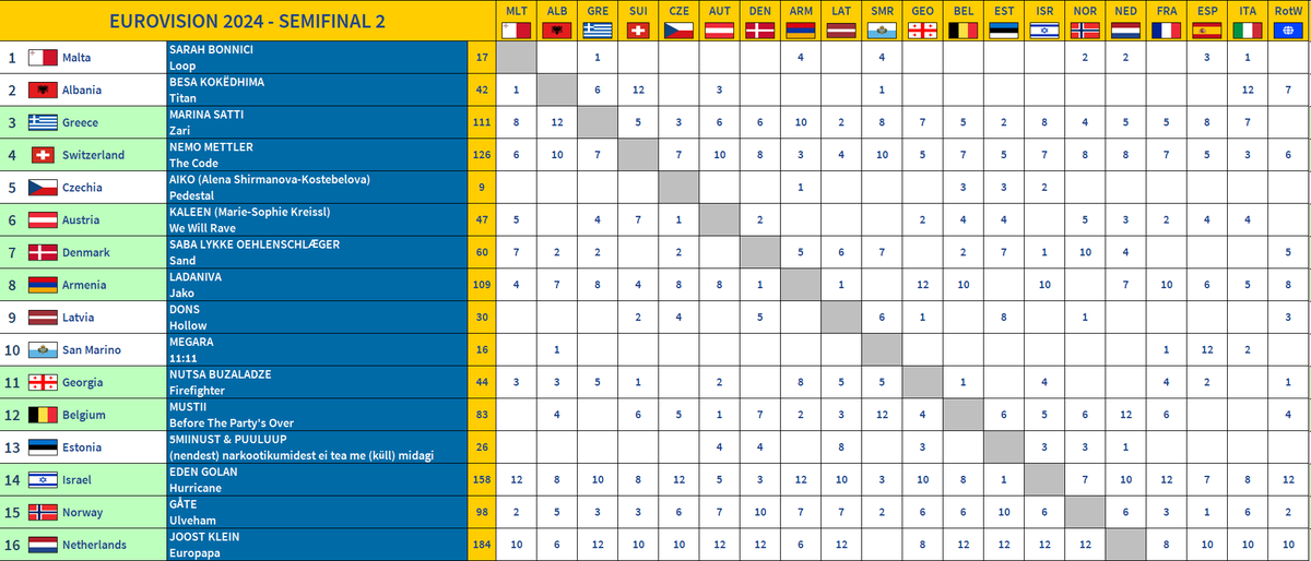 Partiamo, al solito, dalla classifica di ieri. Prevedibilmente vince Angelina Mango (unica vera favorita ad esibirsi ieri), ottimo secondo Ghali, deludono in proporzione ma salvano il salvabile Amoroso e Mr. Rain, totalmente fuori gara Diodato, Negramaro, Mannoia e Sangiovanni.