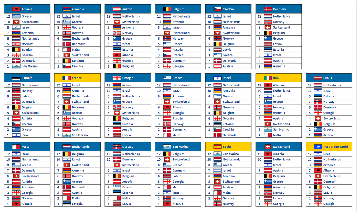 E perché NON ci piace? Perché fare votare le giurie con un giudizio da 1 a 10 su ogni canzone crea una minore variabilità della loro classifica rispetto al televoto, sbilanciando il risultato in favore di quest'ultimo al di là del 34% che dovrebbe rappresentare.