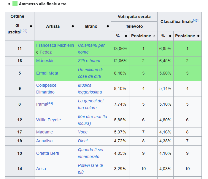 Antipasto FONDAMENTALE e imprescindibile (per tutto quello che verrà poi) della sesta edizione del 🚨🚨🚨 THREAD STATISTICO SANREMESE® 🚨🚨🚨