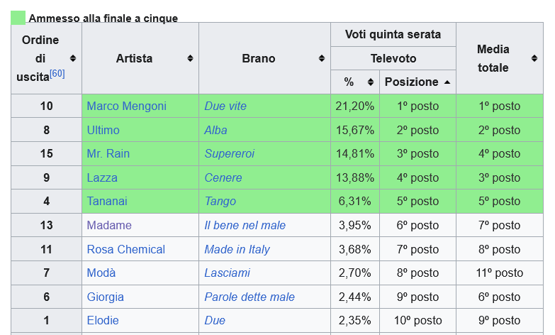 Quarta puntata del 🚨🚨🚨 THREAD STATISTICO SANREMESE® 🚨🚨🚨: le carte sono scoperte, i dubbi sulla top5 sono sempre meno e da qui a sabato si balla la cumbia della noia (in tutti i sensi)