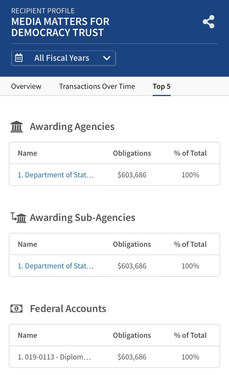 USAID awarded over $600,000 to the far left extremist hate group aka “Media Matters”