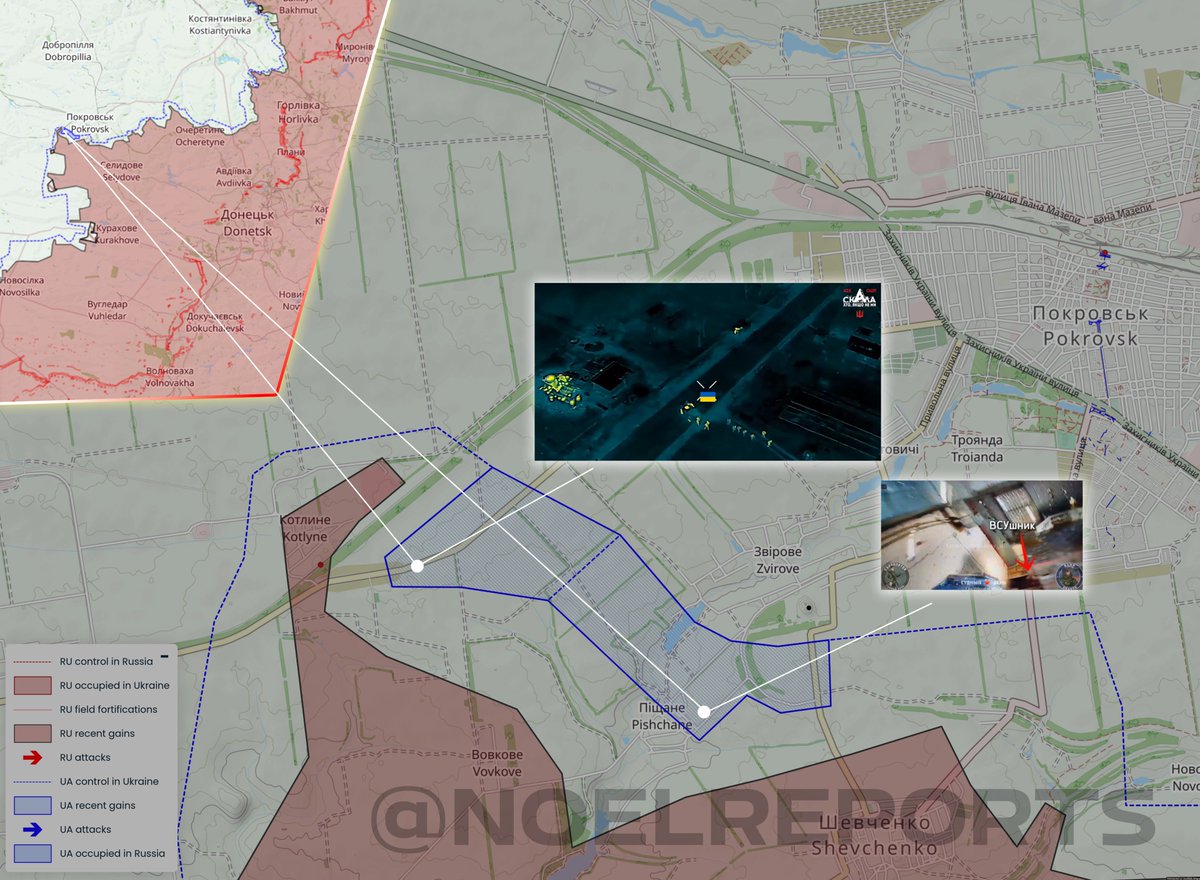The AFU regained positions inside Kotlyne and Pishchane, south of Pokrovsk. These counterattacks - conducted, among other forces, by assault regiment SKALA, were confirmed by Russian sources.