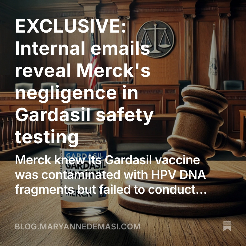 Internal emails reveal that @Merck knew its Gardasil vaccine was contaminated with HPV DNA fragments from the vaccine's manufacturing process and lobbied regulators to bypass testing requirements.