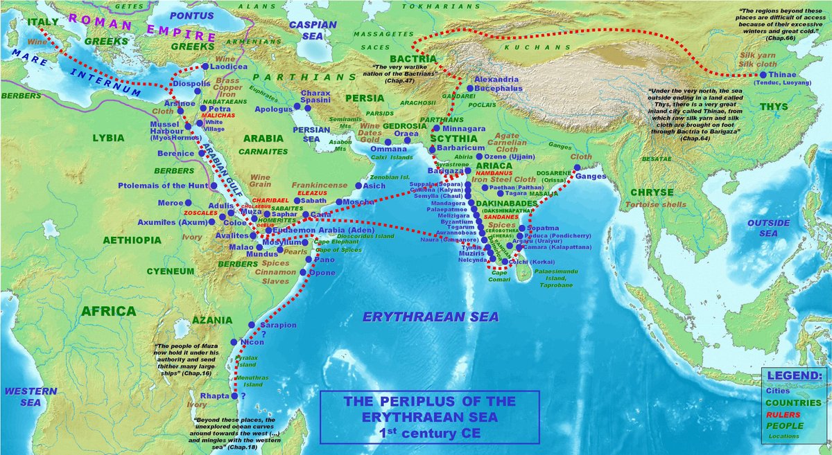 What I am sharing today will further surprise you. What you are seeing below is the map of ports from India as described by Periplus in 1st century CE! This too is a long thread and complete primary sources are provided at the end.