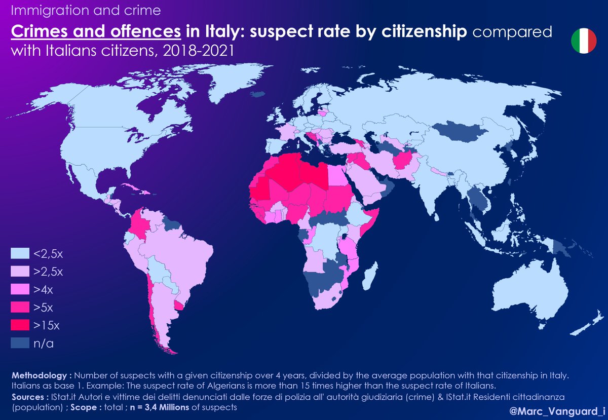 Italy publishes one of the largest database of crime suspects by citizenship.