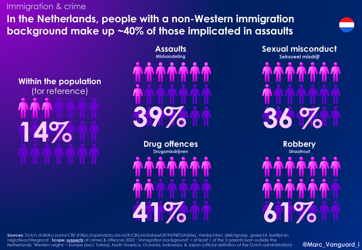 1โฃ Individuals from 'non-Western' immigration background make up 14% of the population in the Netherlands.