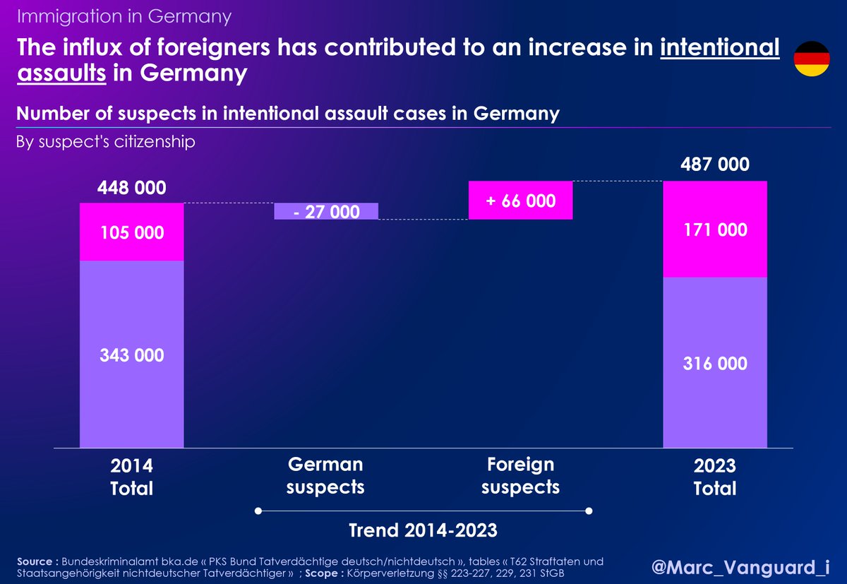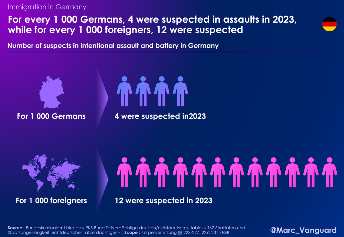 ๐ Among 1,000 Germans, 4 were suspects in assault cases in 2023โฆ
