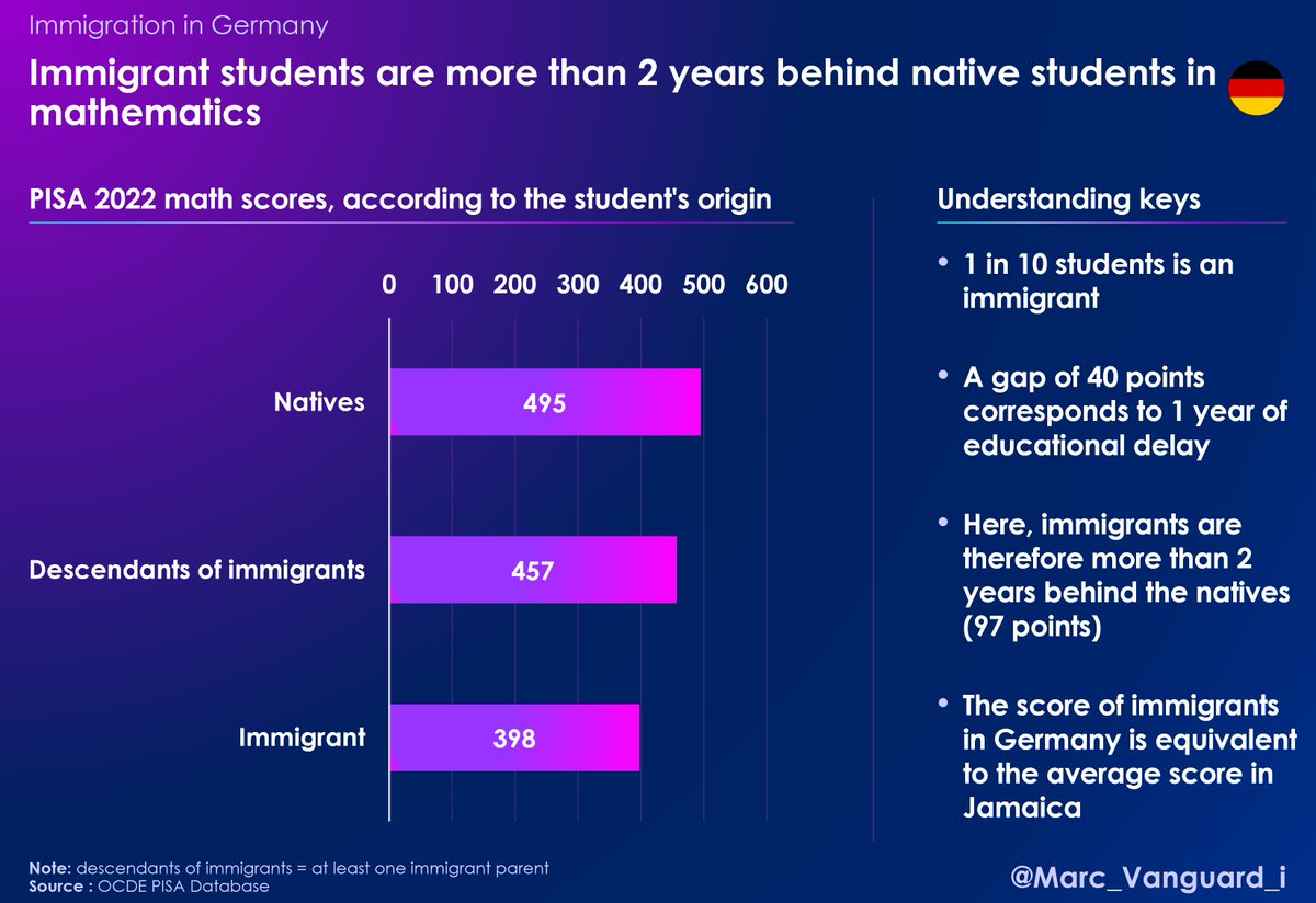 ๐ฃ Another aspect is the education level: immigrant students are more than 2 years behind in mathematics.