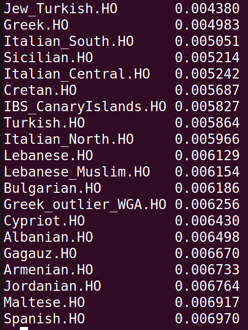 If we look at genetically close populations to present-day Ashkenazi Jews (in terms of Fst), they parallel the West Eurasian PCA. The top-20 list includes Jews from Turkey, Greeks, S Italians/Sicilians (from Europe), as well as Turks, Lebanese, and Armenians (from West Asia) 3/