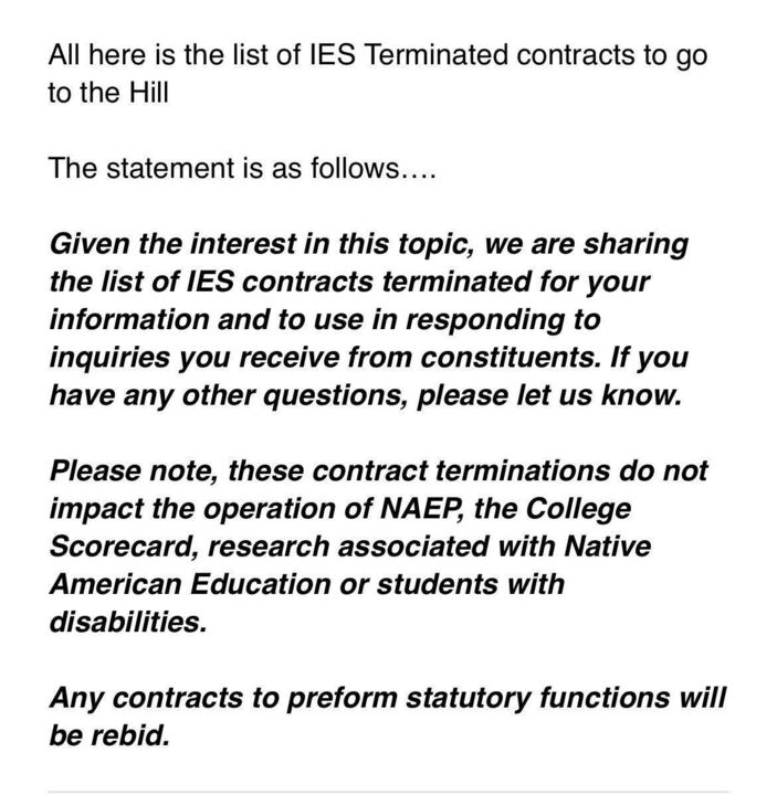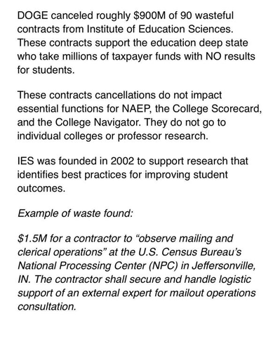 DOGE wants them to say: “These contracts support the education deep state who take millions of taxpayer funds with NO results for students.”