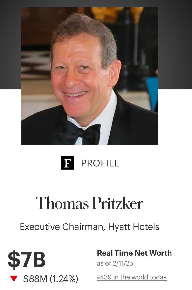 ▪️”Virginia Giuffre claims she was trafficked overseas to have sex with the now 73-year-old, who is chairman of Hyatt Hotels and CEO of the Pritzker Organization.”