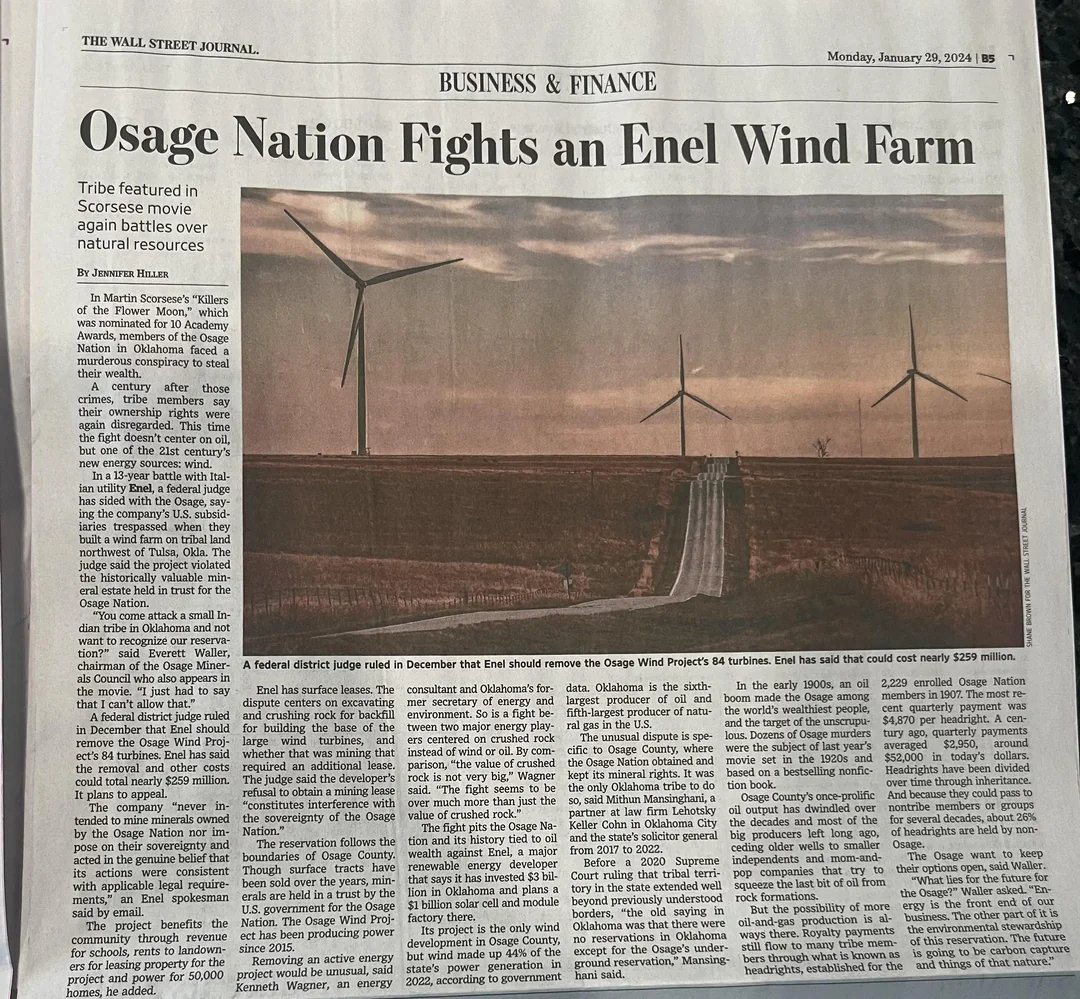7/ The Osage Nation just scored a MASSIVE victory, forcing Enel to REMOVE 84 wind turbines. Cost? $300M!