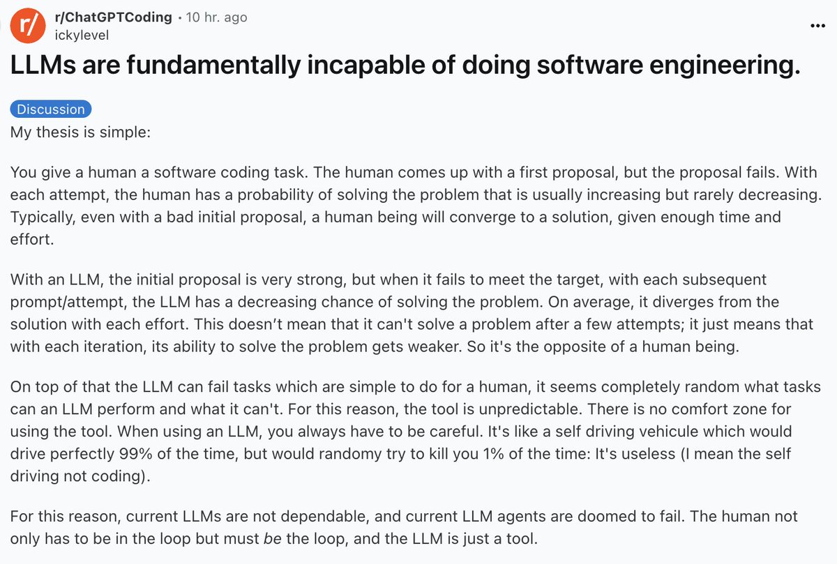 Seeing a lot of hot takes about AI being "incapable" of software engineering. They're missing the point entirely. AI isn't meant to replace engineers -- it's meant to augment them. Here's how: 🧵
