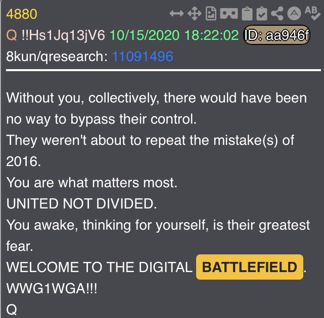 4881 says “Welcome to the Digital Battlefield” at the end. But up top? This is the drop that tells us there is Q, there are Anons, but there is no “Q-Anon”.