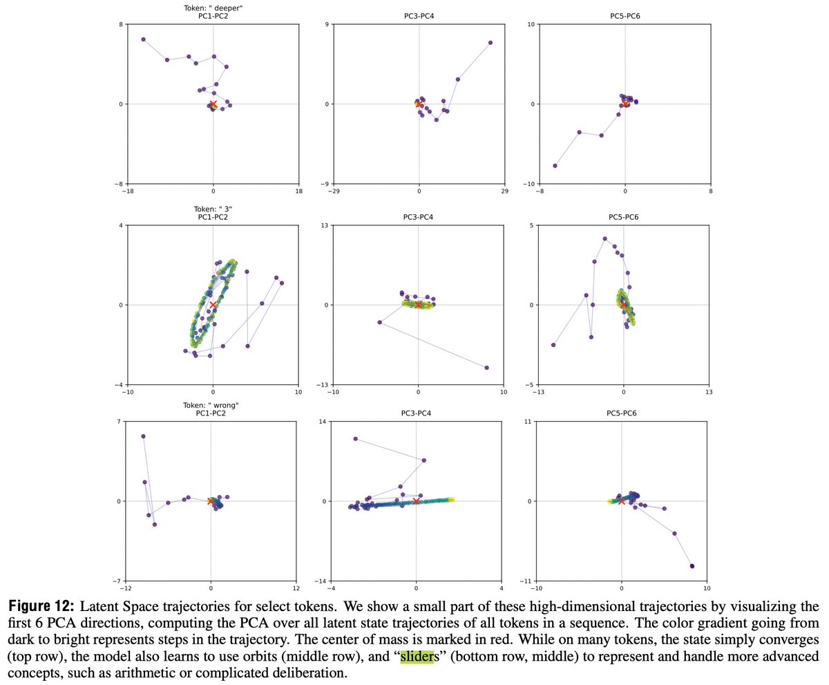 The researchers found fascinating patterns in how the model thinks - it develops "orbits" and "sliders" in latent space to represent different types of reasoning!