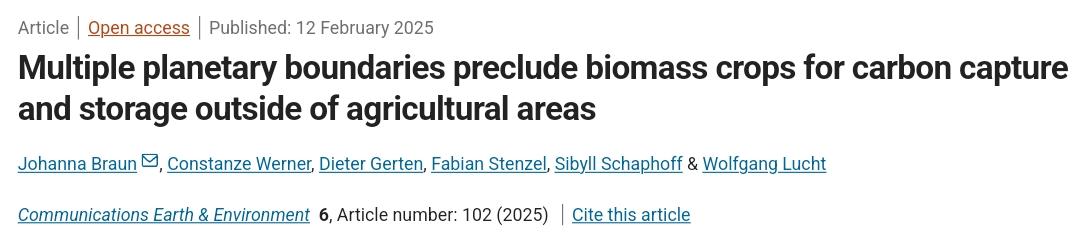 📝 For more details, read the study entitled "Multiple planetary boundaries preclude biomass crops for carbon capture and storage outside of agricultural areas" here: