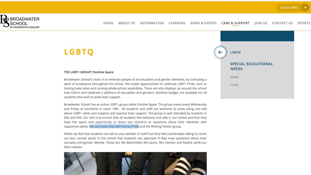 5./ Another reason I can't get my head round these allegations is Ireland worked with schools across Surrey including Broadwater which specialises in vulnerable children with special needs. I'm not sure if they have a swimming pool. They do have an LGBTQ group though. Naturally.