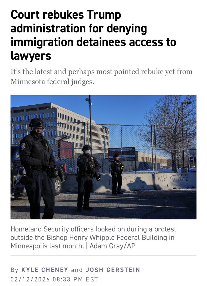 2) BLOWING OFF DEADLINES: When detainees sue for release, the administration is increasingly blowing off court-ordered deadlines to response. It's become almost routine and has led judges to order release in some cases. politico.com/news/2026/02/1…