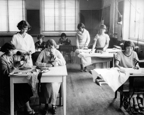 During the early 20th century, when labor was more divided by gender, the US Dept. of Agriculture organized youth clubs orientated around developing certain skills. Chief among them were clothing clubs, which taught young girls how to cut, mend, and sew clothing.