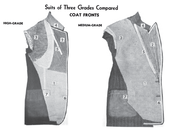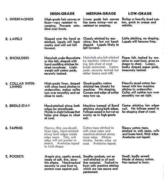 The US Dept of Agriculture also published guides on how to spot quality clothing and take care of things you own. The guides were surprisingly sophisticated. This guide on men's suits talked about fabrics like gabardine, serge, covert, and tropical worsted.