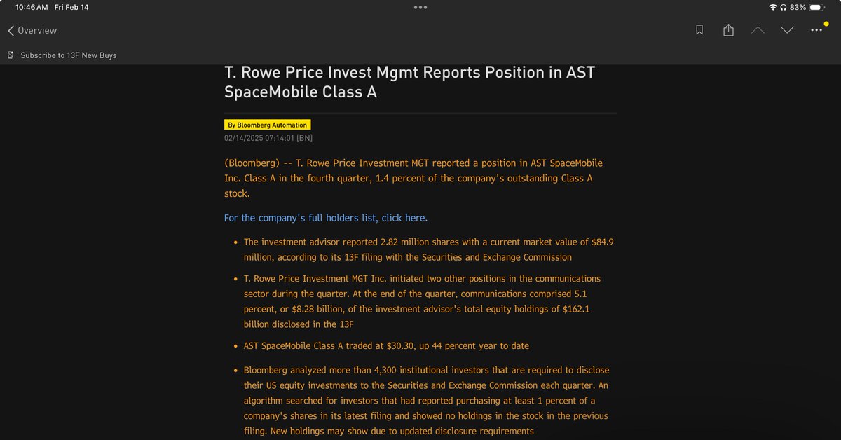 Wait, what the? Who had this on their bingo card? A T-Mobile advertisement for Starlink causes $ASTS to nearly double? Lol. Stocks are crazy. What's even funnier is that it flushed out that one of the great tech titans revealed he owned $ASTS. We are not alone.