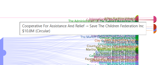 This is the cash from just ONE ngo Save The Children, and shows 1) how many people touch the money along the way, and 2) a view of the kickback grants.