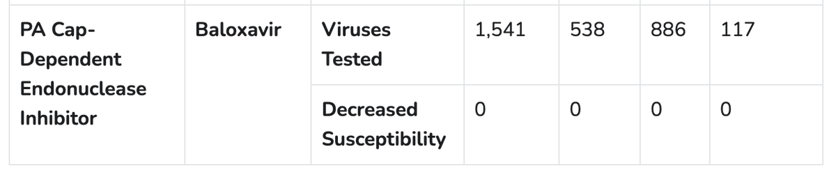 4) And yes, the CDC tracks baloxavir as one of the 4 key flu antivirals it monitors for efficacy against new flu strains every year: