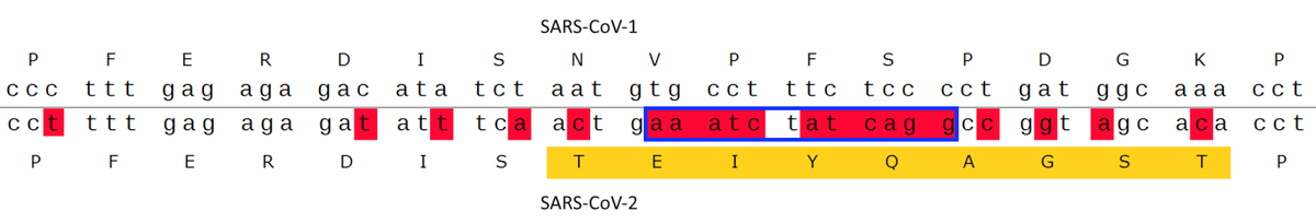 This is the 3' of the RBM, the last region of high variability. Interestingly the SARS-CoV-2 sequence - but not RaTG13 - has good BLAST matches to bat adenoviruses, thanks to the improbably high concentration of mutations.