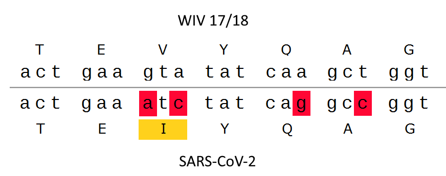Otherwise, the nucleotide sequence is well conserved between WIV/17 and SARS-CoV-2 with 2 wobble mutations. This is normal evolution - except it's the wrong virus!