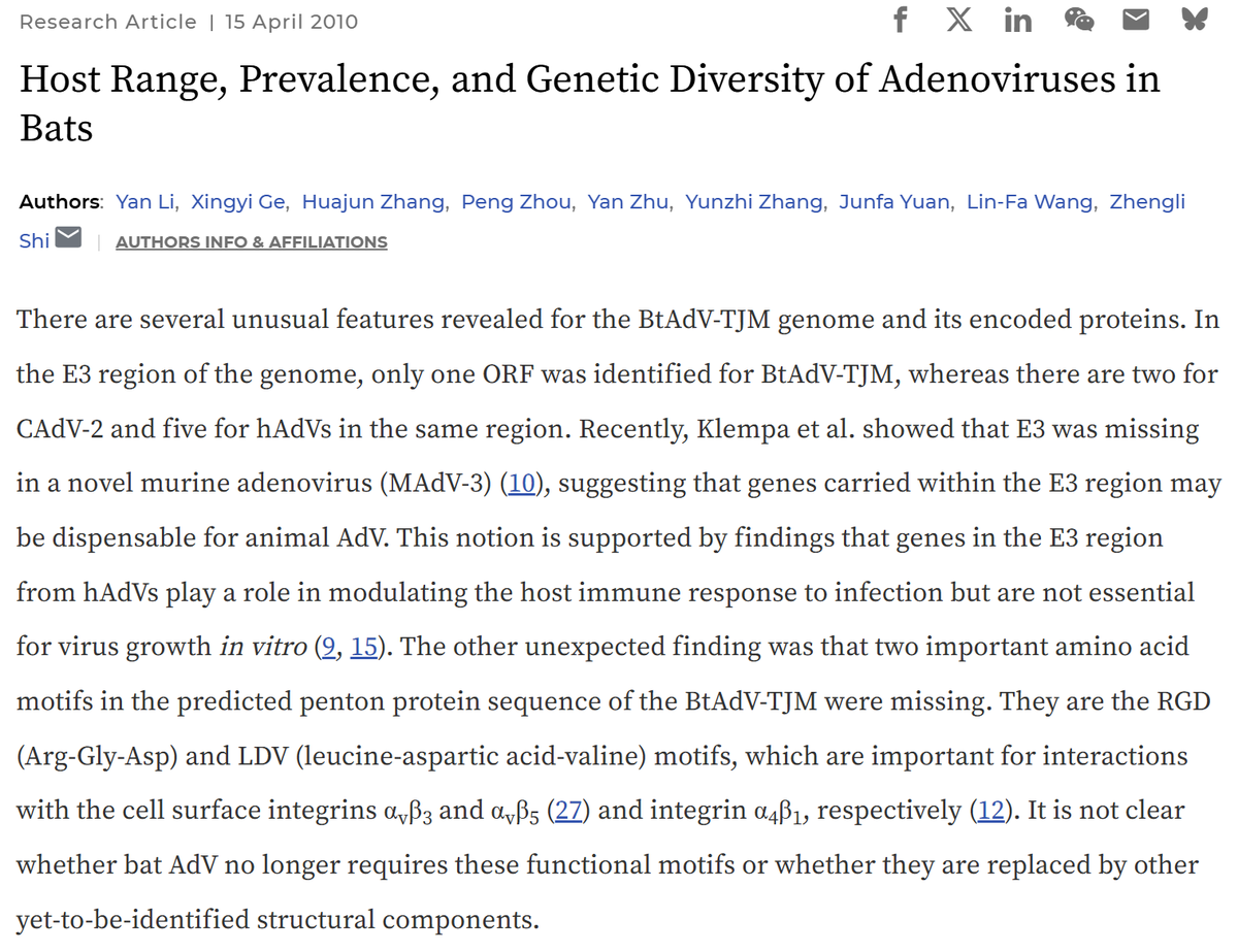 WIV had been isolating bat adenoviruses as back as 2010 and found that RGD, and other known integrin binding motifs were absent. They were interested in the possibility that undiscovered binding motifs might exist.