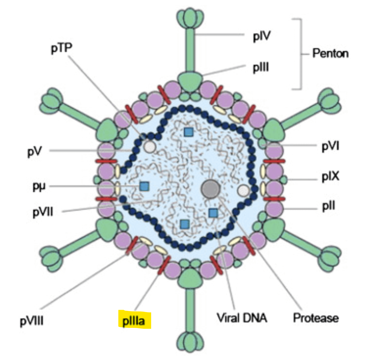 Human adenoviruses bind a receptor CAR with a spike-like protein (fiber). At the base of this is the penton protein. This typically has a 3aa motif RGD which binds integrins on the cell surface which internalize the virus