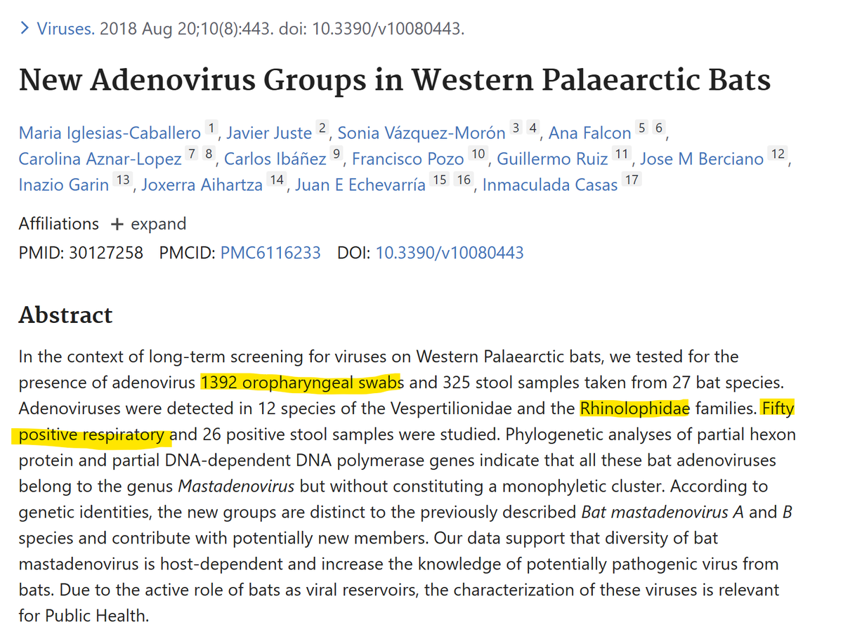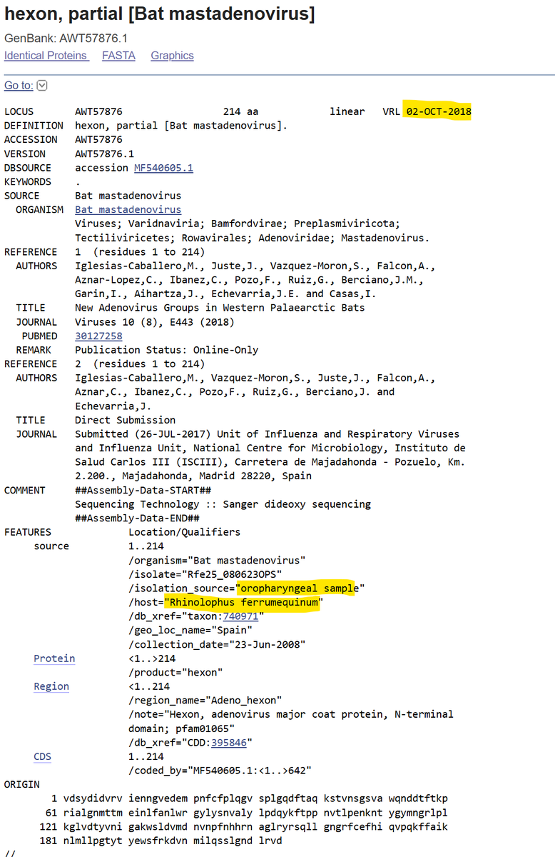 The matching adenovirus fragments were sampled in Spain and published in October 2018. Those with the homology are all from Rhinolophus species.