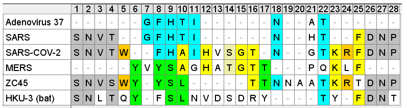 Postscript: This isn't the first time I unexpectedly found a significant peptide from an adenovirus. The first 7 of 8 amino acids of a protein from a virulent human adenovirus occur in one of the NTD loops of SARS-1.