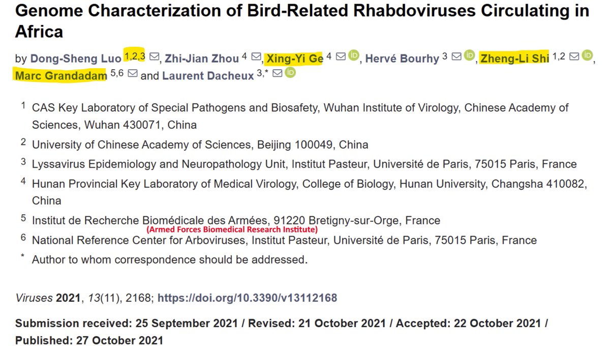 Lead author Dong-sheng Luo gave both Institut Pasteur and WIV affiliations, though he appears to have been in Wuhan when the sequence was submitted, hours before Banal-20-52.