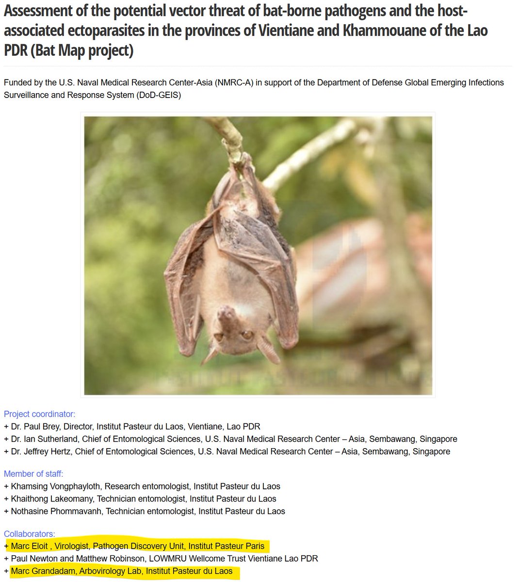 Marc Grandadam was head of a virology lab at Institut Pasteur Laos when they first ventured into the caves where Banal-20-52 was later found.