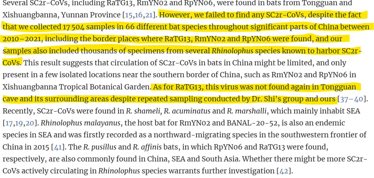Postscript 2: A recent comprehensive survey by central government lab CAMS found no trace of any SARS-CoV-2 related bat virus anywhere in China.