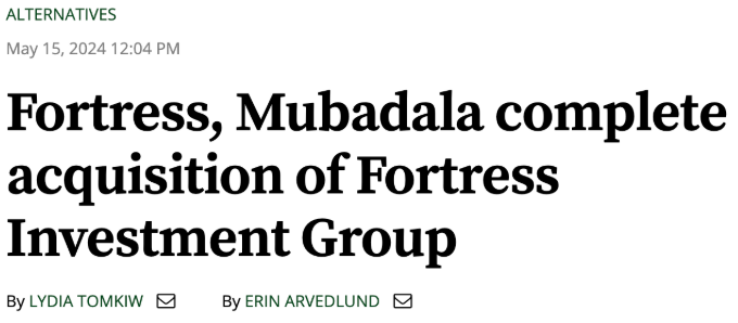 Note: Mubadala—the Abu Dhabi Sovereign Wealth Fund— acquired 68% of Fortress last year, making it the majority owner.