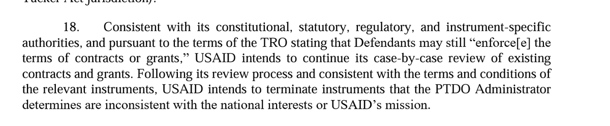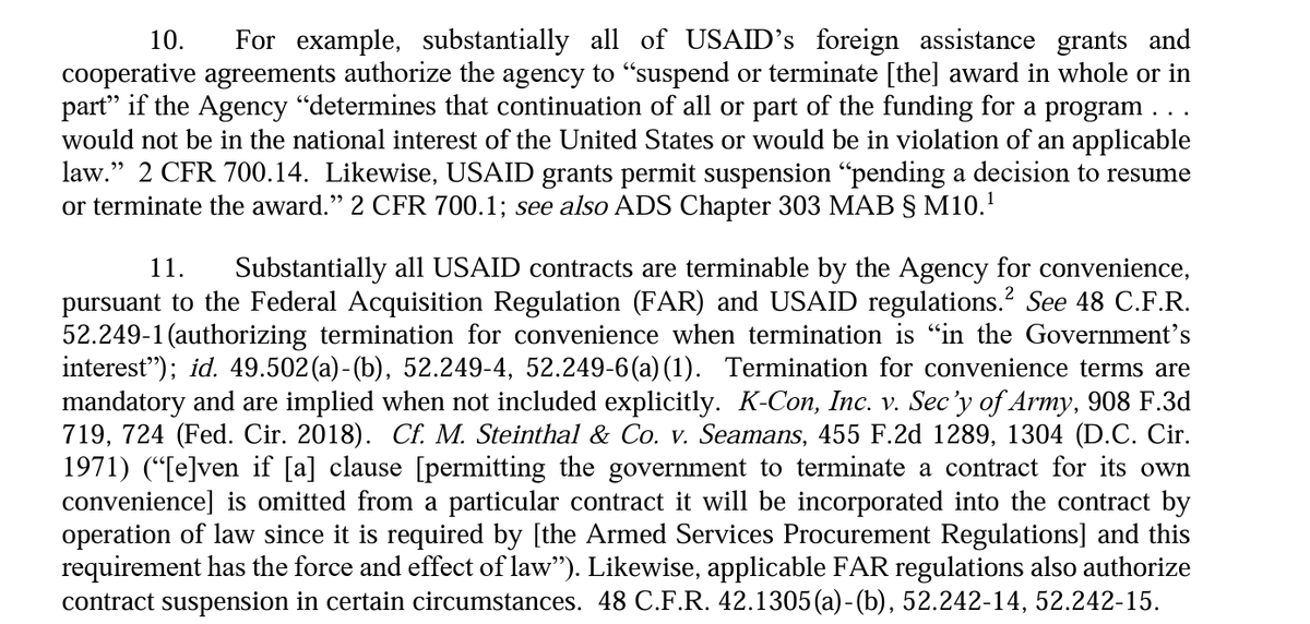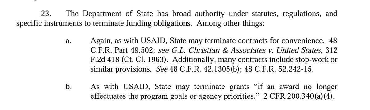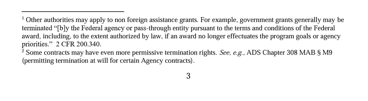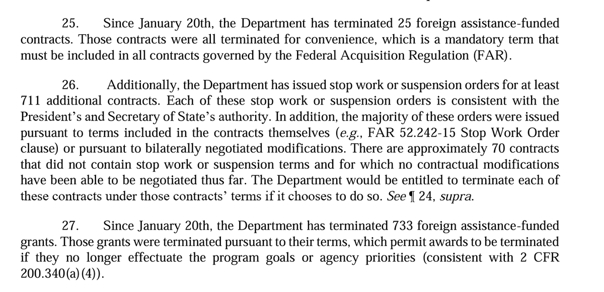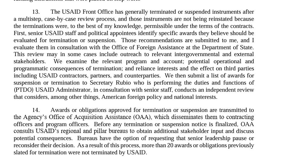 11/ Trump Administration then explains that it paused or suspended "consistent with the terms and rights of the specific awards or contracts." And USAID & State Dept (not Musk or DOGE) then reviewed & decided to terminate.