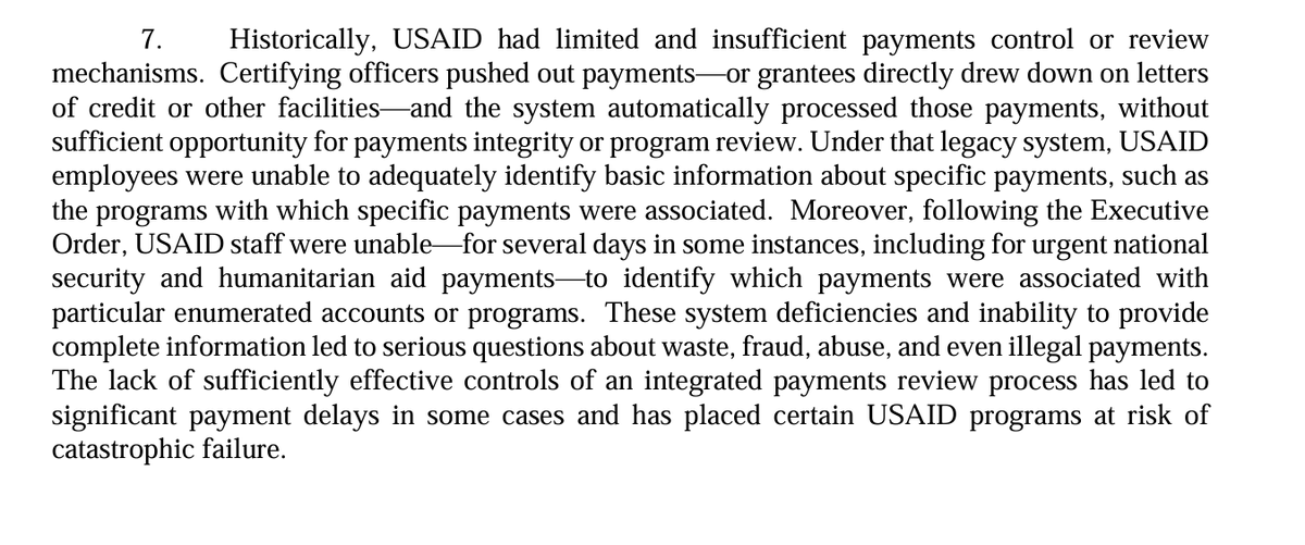 @Oilfield_Rando 8/ Government's declaration now also explains why Trump Administration took approach it did with freeze & then reinstate: USAID records are so horrible it is impossible to know where money is going.