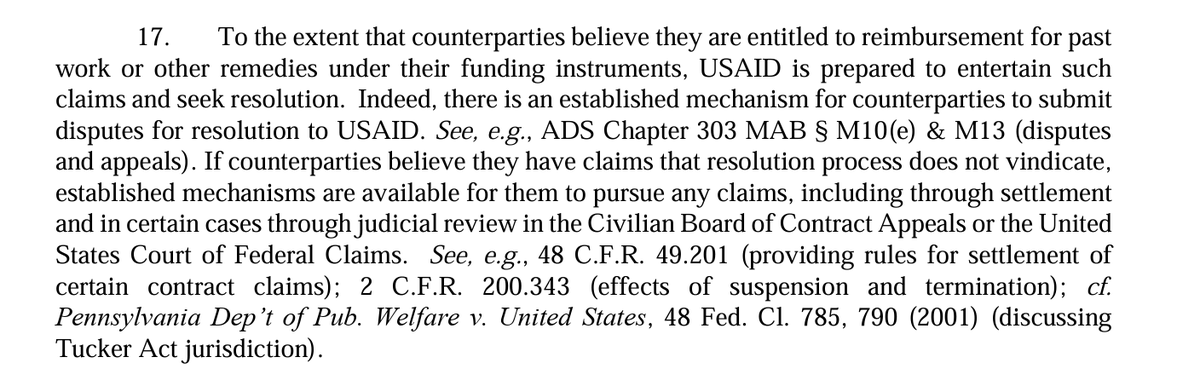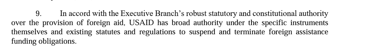 16/ But as I've been screaming for last week, what TRO really said was "you can't freeze or cut USAIDs funding, unless you can." And this also points out issue w/ TRO in first place: Plaintiffs never showed imminent harm to them b/c they never showed Trump couldn't cut funding.
