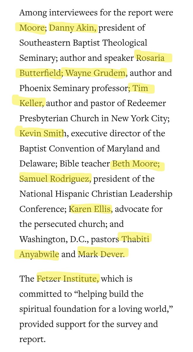 As reported in the Baptist Press back in 2019, the SBC's Ethics and Religious Liberties Committee (ERLC), headed by Russell Moore and with the collaboration of many notable others, coordinated with the occultist Fetzer Institute to produce a report. baptistpress.com/resource-libra…