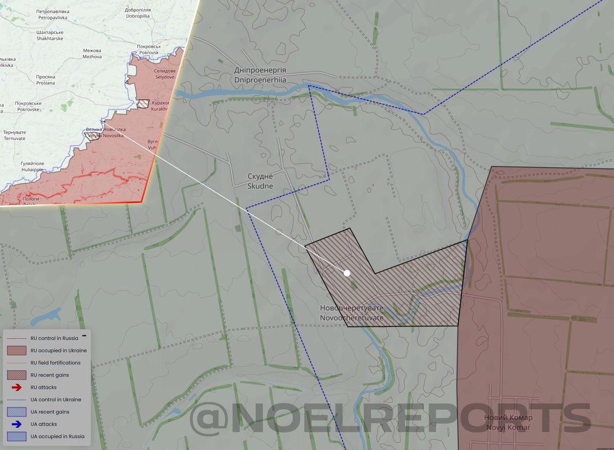 South of Pokrovsk, Russia took over the tiny hamlet of Zaporizhzia, adjacent to Sribne. This has probably already happened some days ago, but only now geoconfirmed based on footage.